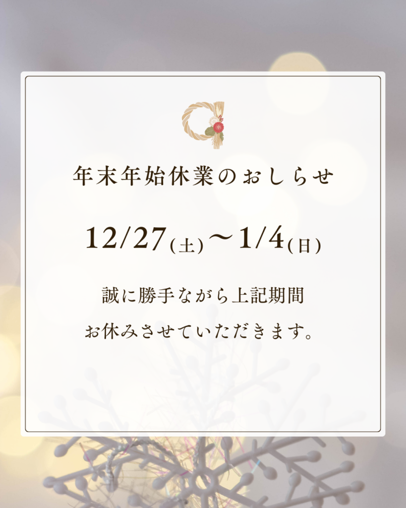 年末年始休業日を下記のとおりとさせていただきます。