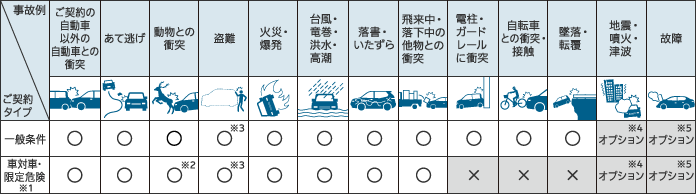*3「⾞両盗難対象外特約」がセットされている場合は補償されません。